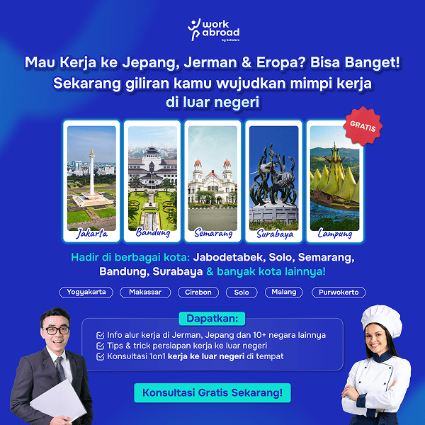 Jangan tunda lagi! Segera persiapkan diri Anda dan konsultasi dengan konsultan expert WorkAbroad.id manfaatkan kesempatan ini sebaik-baiknya. Butuh bantuan lain untuk memulai karier di luar negeri? Cek program terbaik dari WorkAbroad.id untuk persiapan kerja di Eropa, dijamin lengkap dan sesuai kebutuhanmu karena Masa depan cerah menanti!